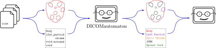 If Explicator or Demarcator are used, the one-off program above will effectively be able to read any DICOM-format data given to it without having to explicitly be programmed to perform any nitty-gritty translations. In a nutshell, Explicator and Demarcator are like a fuzzy Rosetta Stone for radiotherapy applications. If somebody, somewhere along the line accidentally puts a “lfet partoid” into the data, the one-off program will easily be able to handle it. In fact, the translation filter means the “lfet partoid” will be completely hidden from the one-off program. The only thing it will encounter is a nicely-formatted “Left Parotid”.
